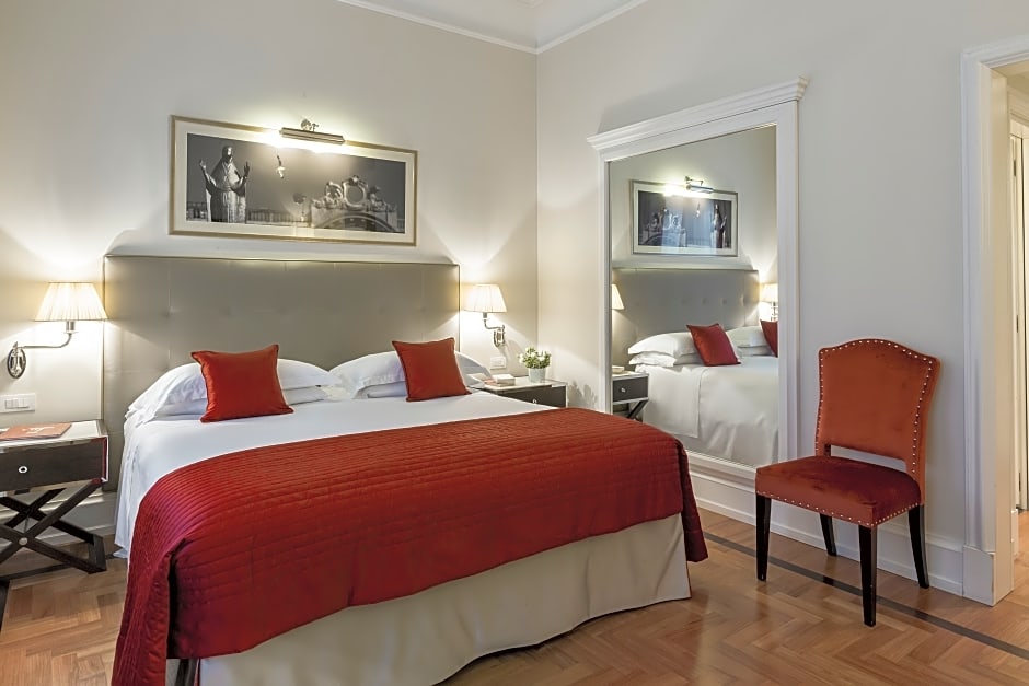 A wide range of amenities is offered, like 24h room service, pillow menu, last generation TV and audio system, shoeshine service. · Room service24/7 · Pillow Menu · Espresso Coffee Machine · Fresh Flowers